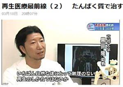 新聞報道ほか、NHKの番組「再生医療最前線 (2) たんぱく質で治す」(2016年3月18日放送)に出演し、最先端の医療技術を発信してきました。