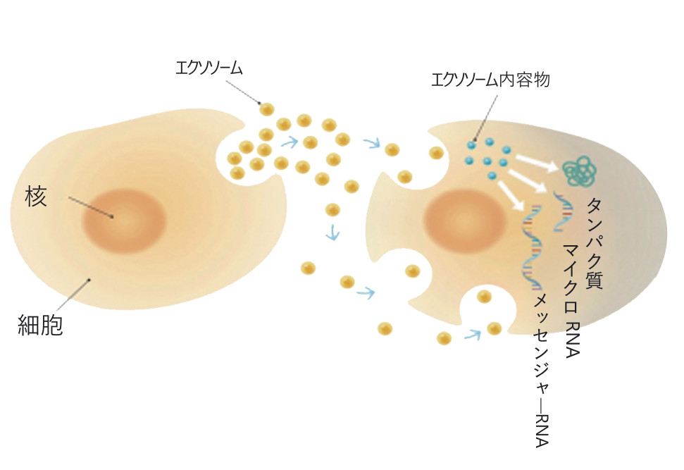 エクソソームは、細胞から細胞へ「治すメッセージを運ぶ」役割を持つ物質です。
